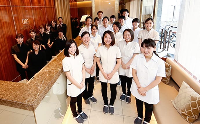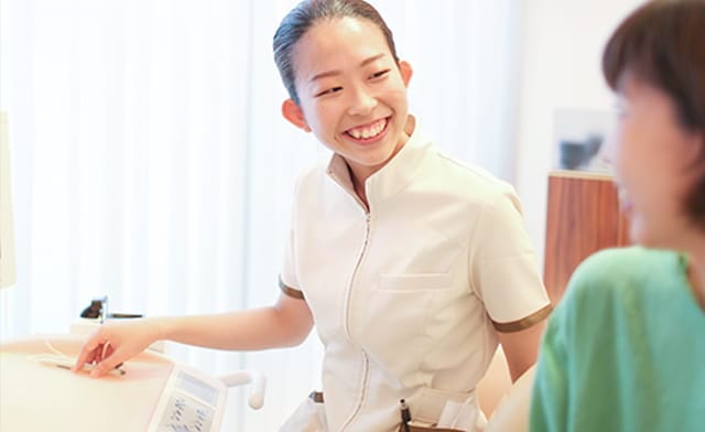診療に携わるすべてのスタッフは歯科衛生士の資格を持っています。現在は8名の歯科衛生士がお口のケアを担当しています。資格取得していないスタッフが診療に従事することはありません。