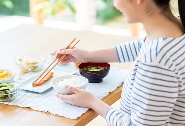 ⾷べ物が装置に絡むことなく、治療前同様の⾷事ができます。