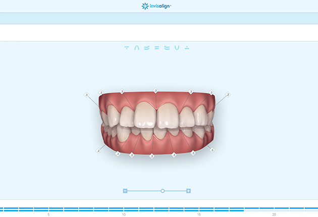 クリンチェックと呼ばれるソフトウェアで、3次元シュミレーションを行って、治療計画を立案します。治療期間中に歯がどのように動くかあらかじめイメージできます。